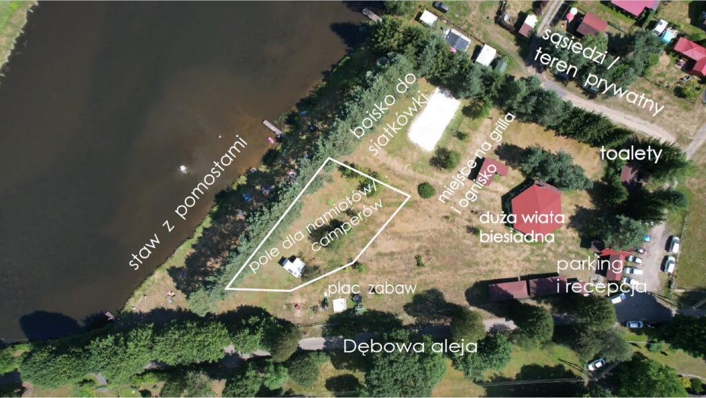 Parcele są położone blisko wody, a pobliskie jarzębiny oraz sosny zapewniają trochę cienia 🙂