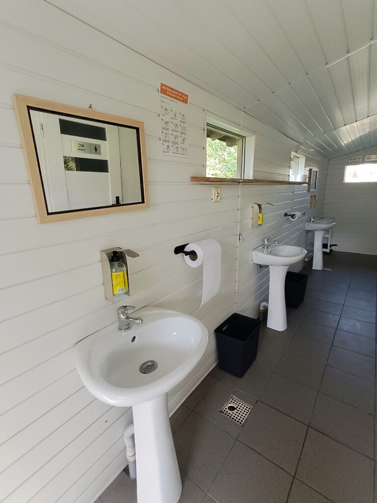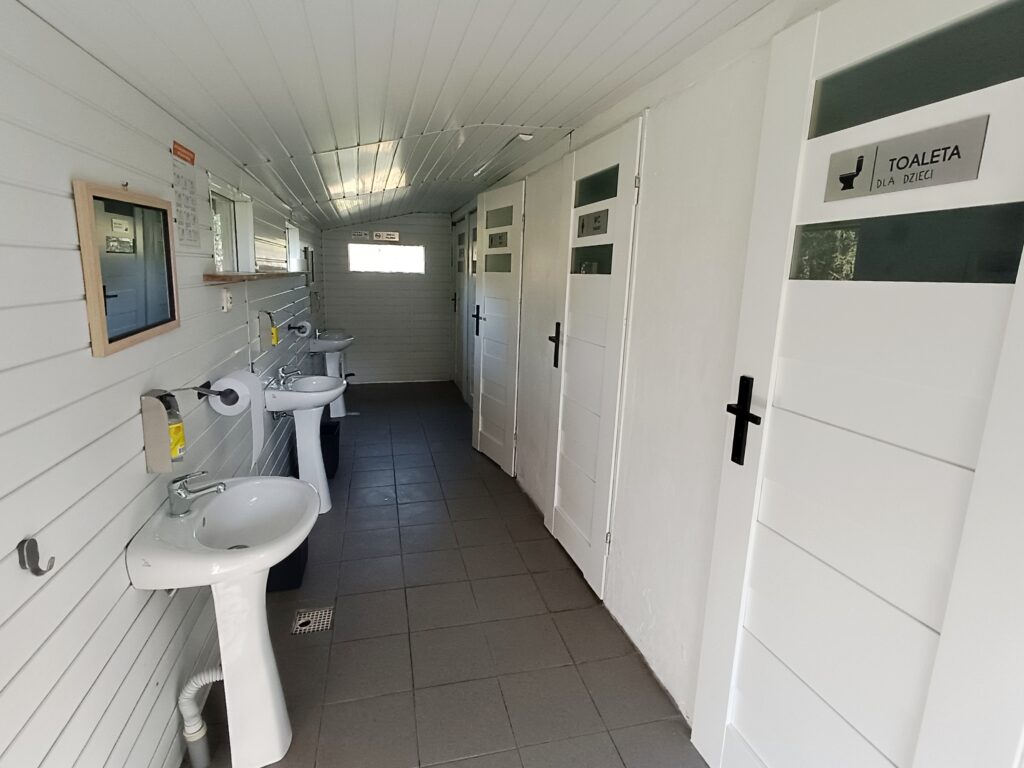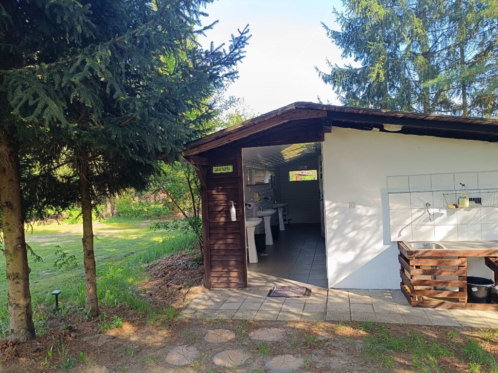 Oferujemy dostęp do podstawowych udogodnień, takich jak przyłącze elektryczne, sanitariaty z bieżącą wodą oraz miejsca na ognisko i grilla, a także w pełni wyposażoną kuchnię z lodówką.